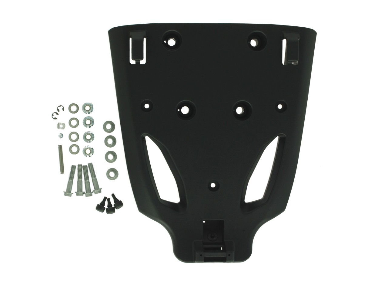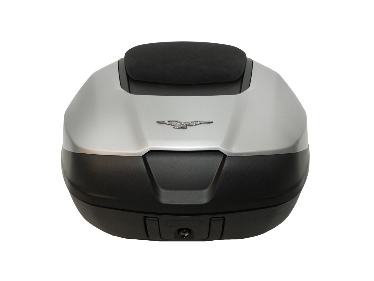 Top case de 52 litros de capacidad para viajes largos, con capacidad para dos cascos integrales. Se integra visualmente en el estilo del Stelvio y tiene una funda especial y un cómodo cojín trasero del mismo material que el asiento. Este baúl puede equiparse con cerraduras independientes para crear un sistema con la misma llave que para el vehículo. También tiene asas retráctiles para transportarlo cómodamente.